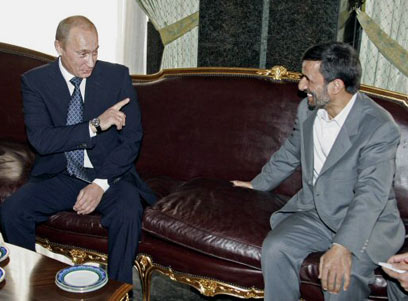 אחמדי-נג'אד ופוטין, היום. להדוף את הסכנות (צילום: רויטרס)