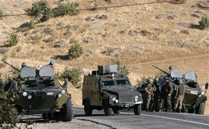 משוריינים של צבא טורקיה סמוך לגבול עם עיראק (צילום: AP)