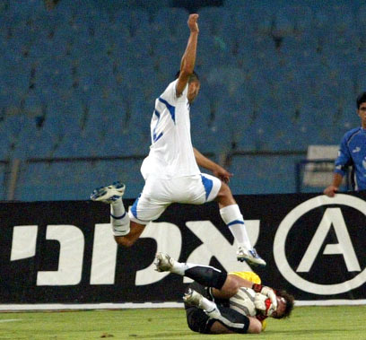 עומר גולן מאבד שיווי משקל במהלך המשחק (צילום: אלי אלגרט)