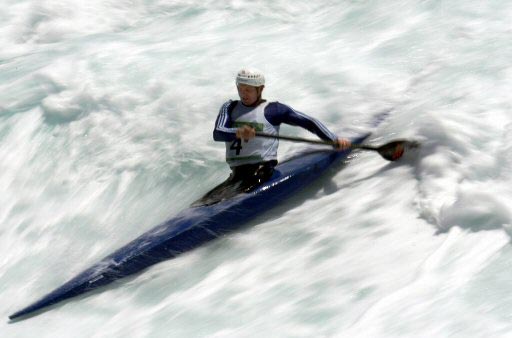 סטיוארט מקינטוש והקאנו באתונה, במים גועשים מאוד (צילום: איי אף פי)