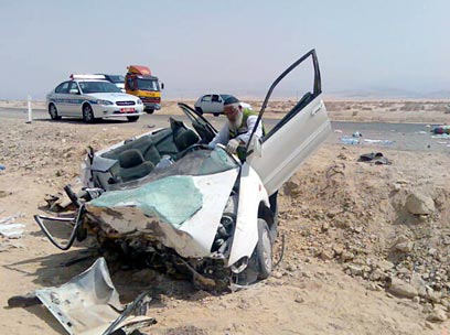 מכונית מרוסקת לאחר תאונה בכביש הערבה (באדיבות מדור צילום זק"א)