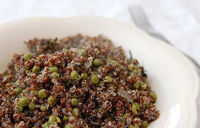 - קינואה אדומה עם אפונה עדינה, בצל וכרישה