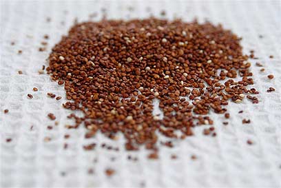 עורו, חובבי הקינואה! אל מדפי חנויות הטבע הצטרפו שני סוגי קינואה שהגיעו זה עתה ארצה: קינואה אדומה וקינואה שחורה. צורתם וגדלם דומים למדי לצורתה של הקינואה הלבנה, וגם הם, בדומה לקינואה הלבנה, תופחים בעת הבישול, מתקשטים בפס לבן ומתאימים את עצמם בקלילות לכל ירק או עשב תיבול. יתרונותיהם הבולטים הם טעמם, המעודן יותר, וצבעם, אדום-חמְרה או שחור, שנשמר בבישול והופך את המנות לססגוניות ומרגשות.