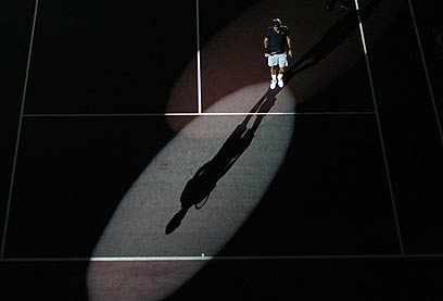 רוג'ר פדרר באור הזרקורים בבאזל (צילום: איי אף פי)