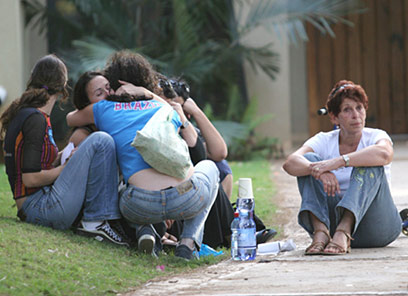 מנחמים ליד בית משפחת אפרתי (צילום: עידו ארז)