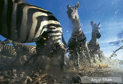 שאה הצליח להתכונן היטב לקראת הצילום, בעיקר בזכות העובדה שהוא הבין את אופי ההתנהגות של הזברות בסרנגטי באפריקה. מצלמה המופעלת באמצעות שלט רחוק הוצבה בסמוך למקווה מים בו נוהגות הזברות לשתות. כששאה שם לב כי עדר זברות החל לנוס בבהלה לעבר מקור המים, הוא חשש כי בעלי החיים יבחינו כי משהו השתנה במקום, נטש את המצלמה וברח במהירות למקום מסתור.