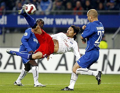 פאולו גררו מהמבורג מנסה מספרת נגד פרייבורג (צילום: איי פי)