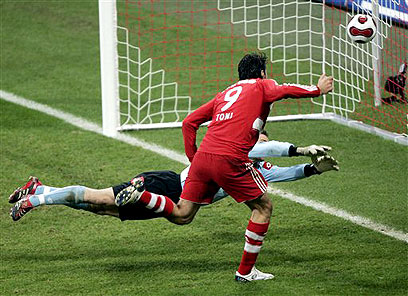 לוקה טוני כובש לרשת של מנשנגלדבאך (צילום: איי פי)