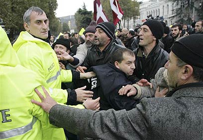 נשיא גאורגיה סאאקשווילי שב והאשים את רוסיה - הפעם את השירותים החשאיים הרוסיים - בליבוי המהומות בארצו. "גאורגיה ניצבת בפני סכנה חמורה ביותר של אי שקט. גורמים בכירים בשירותי הביטחון ברוסיה עומדים מאחורי הדבר", אמר סאאקשווילי בנאום טלוויזיוני שנשא לאומה.