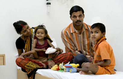 לקשמי טאטמה עם הוריה ואחיה רגע לפני הניתוח (צילום: איי.פי)