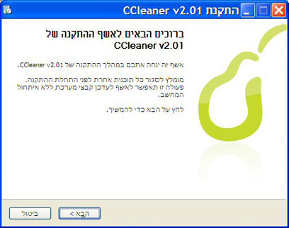 אשף ההתקנה של CCleaner, עם תמיכה עברית מלאה