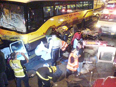 אבי מילר, מתנדב של מד"א ו"איחוד הצלה" שהגיע למקום התאונה, סיפר ל-ynet: "מצאנו במקום רכב הפוך, אחרי שהתנגש חזיתית באוטובוס. ראינו שיש ארבעה בני אדם לכודים בתוך הרכב. הזעקנו כוחות כיבוי וכאשר הלכודים חולצו - התברר לנו שלא ניתן לעזור להם ורופא קבע את מותם".