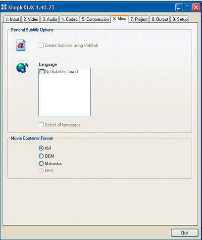 בחלון זה ניתן להצמיד כתוביות שבסרט המקורי לקובץ החדש שיווצר.