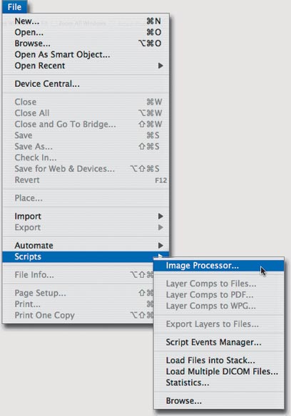 חשוב לזכור שאת הפקודה image Processor ניתן להפעיל ישירות מתוכנת ה-Bridge מה שעשוי לחסוך עוד כמה דקות חשובות.