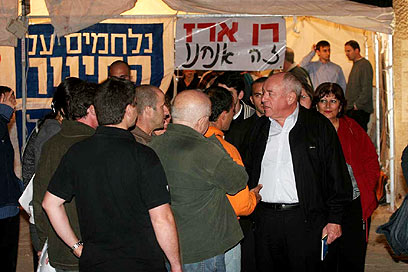 שר האוצר באוהל המחאה (צילום: גיל יוחנן)
