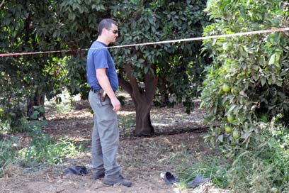 נדקר ונותר כפות. שוטר בזירת האירוע (צילום: עידו ארז)