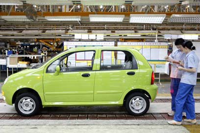 צ'רי QQ על פס הייצור במפעל בסין (צילום: רויטרס)
