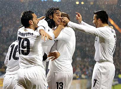 שערים בגשם. לוקה טוני והחברים חוגגים בגלזגו (צילום: איי פי)