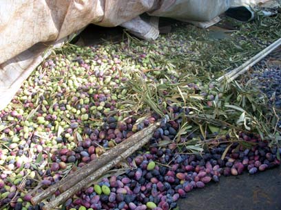 גורפים את הזיתים ומלקטים (צילום: יעל גרטי)