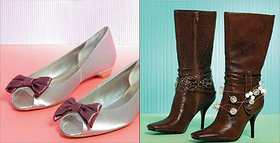מימין: מצמידים לנעל סיכה מעניינת שנועדה לבגד (להשיג בחנויות היצירה.(