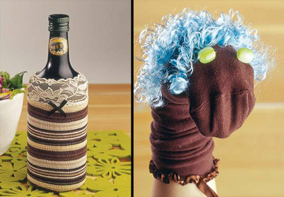 מימין: ברגע שמכניסים לתוך הגרב יד במקום רגל, אפשר לאלתר בובת- כפפה לילדים (אפשר לתפור עיניים ושיער.( למרוח את כפות הידיים בקרם עשיר, לגרוב עליהן גרביים וללכת לישון. הקרם לא יימרח על המצעים והידיים יהיו חלקות ורעננות. לנגב אבק בקלות, או להבריק תכשיטים או נעליים, כמו שממליצה שרה פרי מגבעתיים.