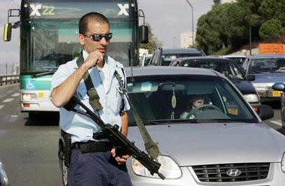 שוטר במהלך בדיקת כלי רכב באזור ירושלים (צילום: AFP)