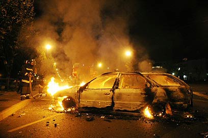 מכונית עולה באש בפרברי פריז, אמש (צילום: AFP)