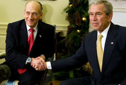 בוש ואולמרט בפגישתם בבית הלבן (צילום: איי.אף.פי)