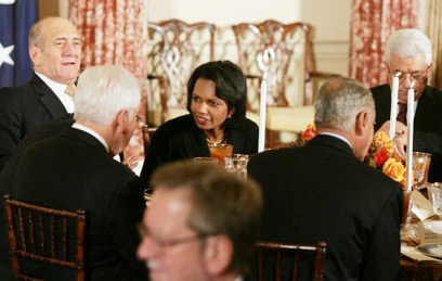 אבו-מאזן, רייס ואולמרט בארוחת הערב (צילום: איי.אף.פי)