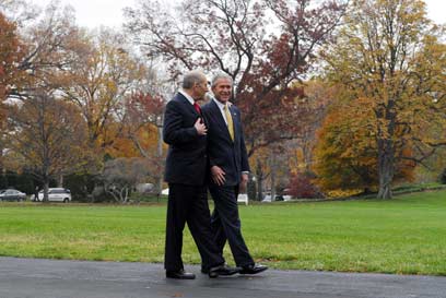 בוש ואולמרט בבית הלבן (צילום: אבי אוחיון, לע"מ)