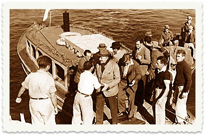 9. פרופ' חיים וייצמן, מאחוריו טדי קולק , חוזרים משיט בכנרת. טבריה, 1942