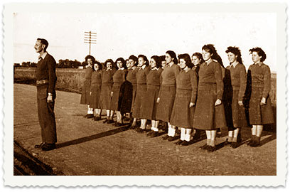 1. מחלקת הבנות של גדוד 6 בחטיבת הרא"ל עם הרס"ר. מחנה ישראל, 1949
