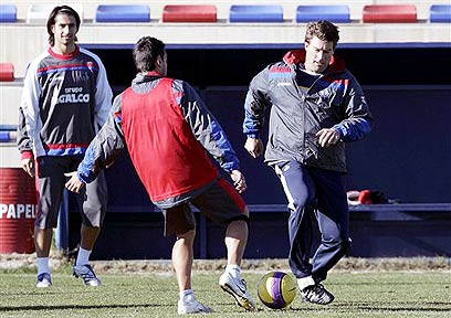 געגועים לימים הגדולים. לאודרופ משתעשע באימון חטאפה (צילום: איי פי)