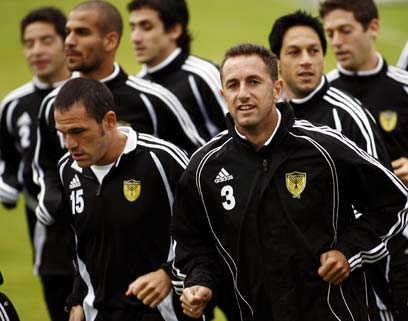 דוד אמסלם באימון בית"ר. "אי אפשר היה להרשיע אותנו" (צילום: טל שחר)