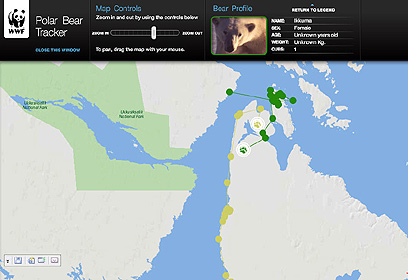קמפיין מיוחד של קרן הטבע העולמית בקנדה מזמין את גולשי האינטרנט לעקוב אחר תנועתן של שש דובות קוטב יחד עם גוריהן באזור המחייה שלהן סביב מפרץ האדסון בקנדה. המטרה: לעורר מודעות לחיסכון באנרגיה כדי להאבק בהתחממות כדור הארץ, שמאיימת על שטח המחייה ואוכלוסיית דובי הקוטב באזור הארקטי