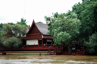 בתום הסיור ירדתי לנהר כדי לראות את הספינות, ושם פגשתי את התאילנדי שלי, ששכב בנחת על סירה והתענג על קרירות הנהר. הבנתי שאוצר המילים שלו באנגלית לא יאפשר דו שיח ארוך ולכן הצגתי את המפה וסימנתי בידי מקום במורד הנהר. הוא הבין, שלף את הטלפון הסלולארי שלו ותיקתק את הסכום שהוא רוצה. תקתקתי בחזרה, וכך הגענו להסכמה על שיט סביב העיר, תוך כדי עצירה בכל האתרים המרכזיים.