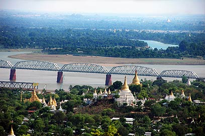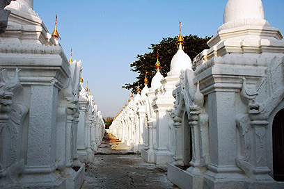 פגודות לבנות ומוזהבות. נוף אופייני לאיזור מנדליי