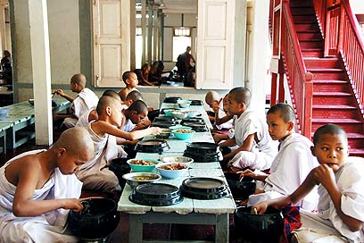 כ-90 אחוז מתושבי בורמה הם בודהיסטים השייכים לזרם התרוואדי, שנחשב לאורתודוקסי מכולם ולכן מוסד הנזירות נערץ ביותר. כל מאמין מצטרף למנזר לזמן מה, גם אם הוא לא מתכוון להפוך לנזיר מן המניין. כל משפחה שולחת לפחות אחד מילדיה למנזר, הן מהכבוד והן משום שהחינוך הוא חינם. הנזירים חיים מתרומות ואוכל שנותן העם הפשוט, ובתמורה הם מעניקים לו הנחיה רוחנית ומנהלים טקסי חתונות ולוויות.
