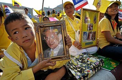 רבבות תאילנדים לבושים בחולצות צהובות ומנופפים בדגלים צהבהבים התגודדו ברחובות בנגקוק הסובבים את הארמון המלכותי, כדי לחזות במלך פומיפון, שערך הופעה פומבית נדירה על מרפסת הארמון. זו היתה הפעם השישית בלבד שהמלך יוצא אל המרפסת כדי לצפות בנתיניו ב-61 שנות כהונתו.