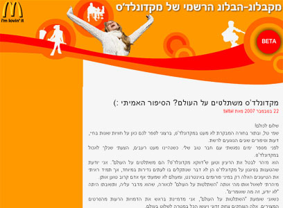 בצד השני של הסקאלה ניתן למצוא את הבלוג של מקדונלד'ס ישראל, "מקבלוג." הבלוג עלה לפני כמה חודשים יחד עם האתר החדש של החברה, ומאז הקישור אליו עובר בין הגולשים בדואר אלקטרוני כבדיחה. הבלוג של מקדונלד'ס הוא הדוגמה לניסיון בוטה, גס ולכן גם כושל, לגייס את טרנד הבלוגים כדי לתקשר עם הקהל באמצעות טקסטים מטעם.