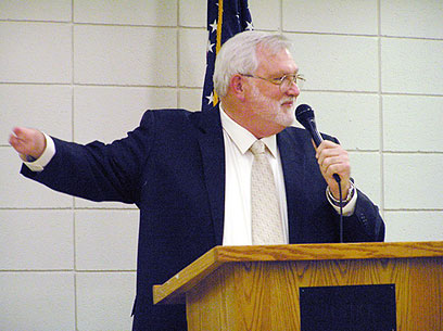 דמפסי היום בהרצאה בבי"ס. נולד בלי יד ימין (באדיבות CCCFCA/COA)
