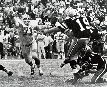 לא בא ברגל. דמפסי מציג את הרגל הבועטת (באדיבות Pro Football HOF)