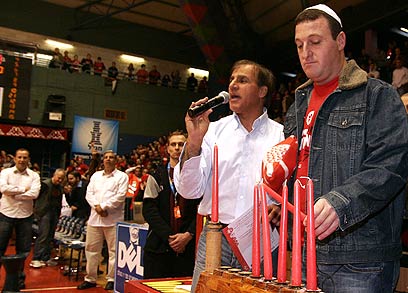 יואב גליצנשטיין מדליק נר חנוכה במלחה (צילום: דודי ועקנין)