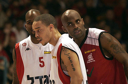 מייק קמפבל שומר מקרוב על אנתוני רוברסון (צילום: דודי ועקנין)