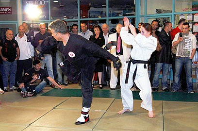 הלוקיישן: בית ספר ללימוד אמנויות לחימה של גיא סקורניץ ברמת אביב ג'. לפיד, בלוק השחור הנצחי, פלוס חגורה תואמת בדרגת דאן 3, הפגין בפני הקהל את הכישורים שלו בהנפת אגרופים ורגליים. כולל קרב מול מיקה, אלופת הארץ במכות מהסוג הזה. פאנל הפרשנים נקרא לדגל.