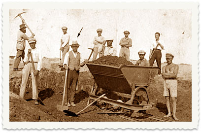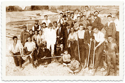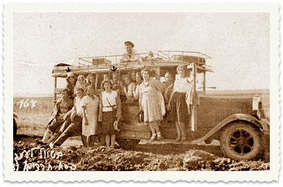 4. אביה של רבקה (מסומן בתמונה בחץ), חיים צבי אברמוביץ, עלה לארץ עם משפחתו בשנת 1921 ועבד בתחילה בהכשרת הקרקע לרחוב בלפור בתל אביב