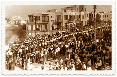 7. בשנת 1929 פרצו בארץ ישראל הפרעות שכונו מאורעות תרפ"ט, שבהם נרצחו יהודים בצפת, בחברון וביפו. הלווית הרוגי תרפ"ט בתל אביב, 26.8.1929