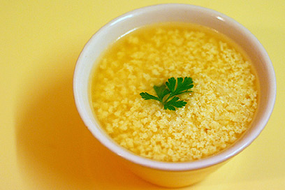 חשוב לתבל את תערובת הביצים במעט מאוד אגוז מוסקט טחון או מגורר, במלח ובפלפל. ואל תשכחו את העצה של אנייזה: יש להשתמש בגבינת פרמזן משובחת – היא הופכת את המרק למה שהוא באמת ונותנת לו המון טעם. המתכון שמובא בהמשך הוא מתכון שנוסה בהצלחה על בסיס מרק עוף רגיל, העשוי מעוף ומירקות טריים, ללא אבקת מרק.