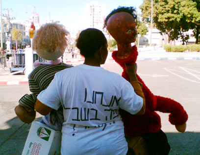 בובה כהה ובובה בהירה בהפגנה (צילום: רענן בן צור)