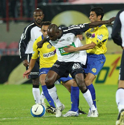שבחון ורמאליו נאבקים עם בלסינג קאקו (צילום: אלי אלגרט)